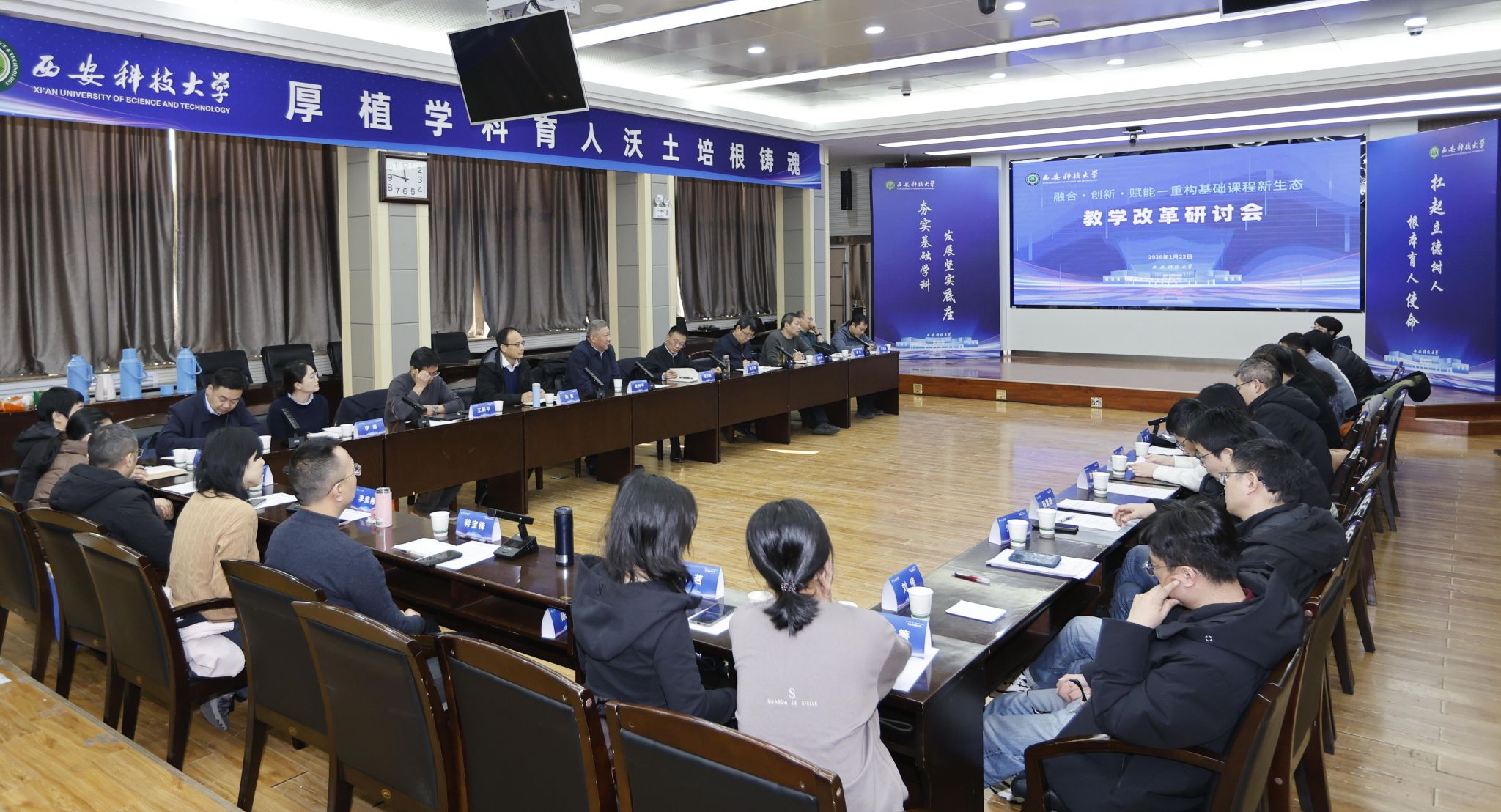 为深入贯彻落实立德树人根本任务,精准对接国家战略对人才基础能力与综合素养的紧迫需求,系统破解基础课程教学中的关键问题,1月22日,学校召开基础课程教学改革专题座谈会。校党委书记来兴平、副校长程卫星出席会议,理学院、人文与外国语学院领导班子成员,数学系、物理系、工程图学系、力学系及大学英语教学一、二部负责人与教师代表,教务处、教学质量监督评估中心相关负责人参加。